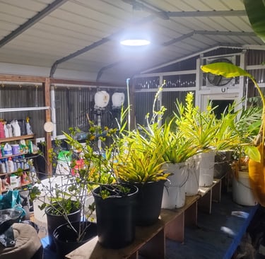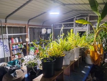 None of this is permanent. Someday the citrus will stand on its own, and there will be a proper hot house for the tropical plants.